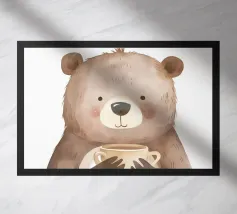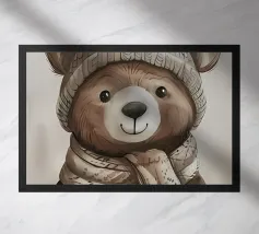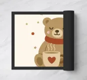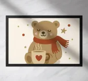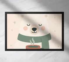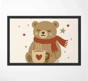 Simpatico orso in inverno con sciarpa e tazza calda - perfetto per un look accogliente, per l'inverno, per il Natale e per tutti coloro che amano i simpatici motivi animali.