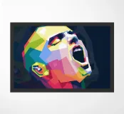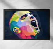 WPAP (Wedha's Pop Art Portrait) è uno stile artistico geometrico, vibrante e colorato che enfatizza gli angoli acuti e i contrasti di colore. Un ritratto di Sinéad O'Connor in stile WPAP presenterebbe la sua sorprendente struttura facciale con forme spigolose e taglienti in colori vivaci e contrastanti. La sua caratteristica testa rasata e il suo sguardo intenso sarebbero accentuati da audaci motivi geometrici. L'opera d'arte catturerebbe la sua profondità emotiva e il suo spirito ribelle, riflettendo la sua eredità di musicista e attivista senza paura.