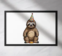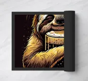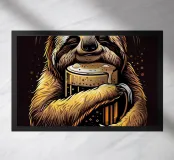 sloth beer mug animal drink beverage furry smiling bubbles frothy relaxation contentment poster cartoon illustration warm colors cheers friendly happiness