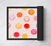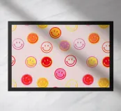 Il motivo colorato Faccine sorridenti è un semplice ma accattivante motivo luminoso nei colori rosa, arancione, giallo e rosso. Presenta molte facce sorridenti che mettono di buon umore. Motivo felice e ottimista ispirato allo stile retrò anni '70 di showmemars
