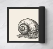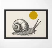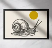 Linocut snail poster in black and white minimalist style. Botanical-inspired wall art celebrating slow living and nature. Perfect for modern interiors, nature lovers, and mindful home décor.