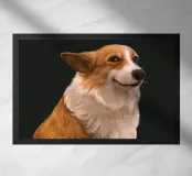 Un piccolo e sciocco cane Pembroke Welsh Corgi che fa gli occhi dolci in un ritratto pittorico