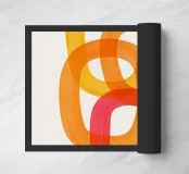 Questo poster d'arte moderna mostra forme intrecciate e trasparenti nei toni accesi del rosso, dell'arancione e del giallo. I colori caldi creano leggerezza e movimento e ricordano la luce del sole, il calore e l'energia. Ideale per interni minimalisti, spazi abitativi moderni o studi creativi: un richiamo armonioso per qualsiasi parete.