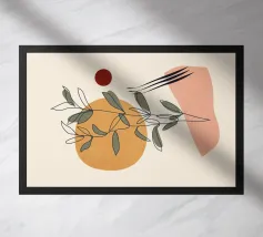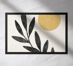 Questa splendida e moderna stampa da parete presenta un disegno botanico minimalista con un sorprendente contrasto di sagome nere su uno sfondo caldo e neutro. Il centro è costituito da un grande sole dorato, che aggiunge un tocco di eleganza e calore, mentre una morbida forma astratta color pesca completa la composizione. Questo pezzo è perfetto per creare un'atmosfera serena e sofisticata in qualsiasi spazio, dal soggiorno alla camera da letto o all'ufficio. È un'ottima scelta per chi apprezza l'estetica boho, scandinava o moderna di metà secolo. Stampata su carta opaca di alta qualità, quest'opera d'arte è disponibile in