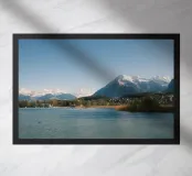 Il maestoso Niesen si erge sopra il tranquillo lago di Thun, vegliando sull'Oberland bernese. Questa foto cattura una limpida giornata di primavera, con la luce che cade dolcemente sull'acqua calma e sulle cime innevate. Una scena pacifica tra natura e insediamento, un dialogo tranquillo tra lago, villaggio e montagna.