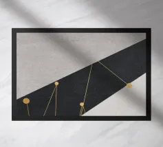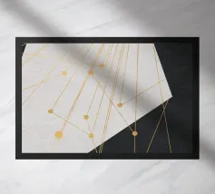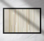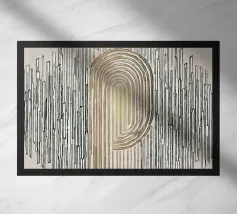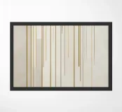Questa illustrazione astratta combina forme geometriche e linee sottili in un design minimalista che gioca con accenti beige e oro. La disposizione simmetrica e i tratti stretti creano una struttura elegante che presenta elementi vintage e grunge. Perfetta per gli amanti dell'estetica scandinava, l'opera irradia una bellezza senza tempo.