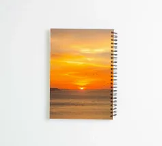 Splendido tramonto con sole arancione e uccelli all'orizzonte.