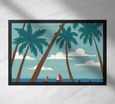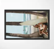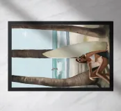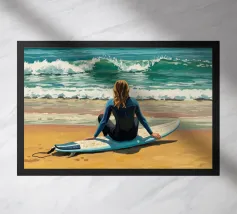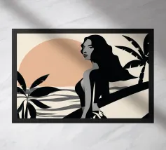 Quadro digitale chic di una donna che si rilassa all'ombra con una tavola da surf, incorniciata da palme e da una tranquilla vista sull'oceano. Un surfista scivola in lontananza, catturando il ritmo rilassato della vita da spiaggia. Quest'opera d'arte unisce il sole, il surf e lo stile senza sforzo, perfetto per l'arredamento costiero, gli interni moderni e gli amanti della cultura del surf. Ideale per camere da letto, case al mare o monolocali. Un regalo prezioso per le anime dell'oceano e per gli amanti delle scene estive calde e minimali.