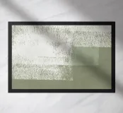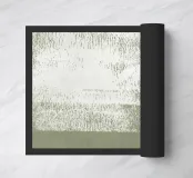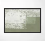 Pittura acrilica con pennellate di colore bianco su sfondo verde salvia e verde oliva.