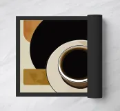 caffè tazza piattino bevanda colazione caffeina lettering tipografia grafica caffè nero chicchi di caffè bevanda circolare illustrazione marrone bianco testo mattina arte forme