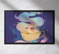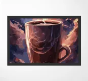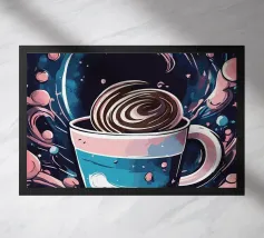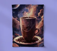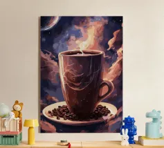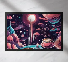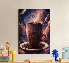 caffè tazza di caffè vapore spazio luna pianeti chicchi di caffè piattino nuvole cielo notturno celeste cosmo galassia stelle tramonto colori caldi spazio esterno aroma mattina bevanda