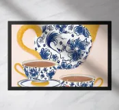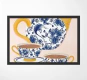 teiera tazze da tè tè fantasia floreale motivo blu design ornato porcellana stoviglie set da tè bevanda bevanda teiera tazza e piattino motivo floreale pois disegno tradizionale ceramica oggetti da collezione set da portata rinfresco