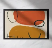 A minimalist abstract composition of organic shapes in terracotta, beige, and black, with textured details. The style is modern, earthy, and balanced.