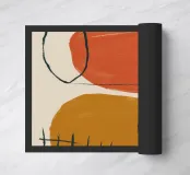 Una composizione astratta e minimalista di forme organiche in terracotta, beige e nero, con dettagli strutturati. Lo stile è moderno, terroso ed equilibrato.