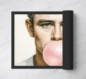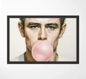James Dean come non l'avete mai visto prima: Questo ritratto iperrealistico mostra l'icona del cinema con una gomma da masticare rosa: ribelle, cool, sorprendentemente moderno. Il motivo combina il fascino retrò con l'estetica della pop art contemporanea. Perfetto per gli amanti delle personalità iconiche, delle vibrazioni vintage e dell'arte da parete di stile. Un pezzo forte per il soggiorno, il loft o lo studio.