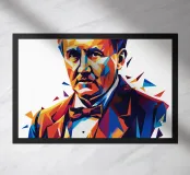 Celebrate l'ingegno di Thomas Edison con questo vivace disegno Pop Art di WPAP. Utilizzando audaci forme geometriche e un'accattivante tavolozza di colori, quest'opera d'arte reimmagina il prolifico inventore in uno stile moderno e astratto. La tecnica WPAP (Wedha's Pop Art Portrait) cattura lo spirito innovativo di Edison e i suoi contributi monumentali alla tecnologia e all'industria, tra cui la lampadina elettrica e il fonografo. Perfetto per gli appassionati di invenzioni, gli storici e gli amanti dell'arte, questo disegno è un tributo unico a uno degli inventori più importanti della storia.