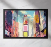 Questa vibrante opera d'arte cattura l'energia elettrica di Times Square a New York. Cartelloni pubblicitari colorati, strade affollate e gli iconici taxi gialli riempiono la scena, creando un'atmosfera cittadina dinamica. Con tinte vivaci e uno stile illustrativo moderno, celebra il battito della vita urbana e lo spirito senza fine di New York.