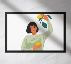 La stampa d'arte "Citrus Touch" presenta un vibrante ramo di limone abbinato a forme astratte, mescolando la freschezza della natura con un tocco moderno. Questo design vivace aggiunge un tocco di colore e di stile a qualsiasi spazio.