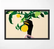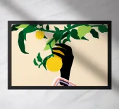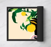 La stampa d'arte "Citrus Touch" presenta un vibrante ramo di limone abbinato a forme astratte, mescolando la freschezza della natura con un tocco moderno. Questo design vivace aggiunge un tocco di colore e di stile a qualsiasi spazio.