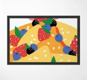 Illustrazione di una torta con guarnizioni di fragole, mirtilli e more.