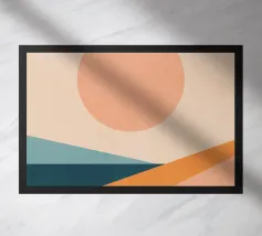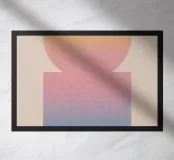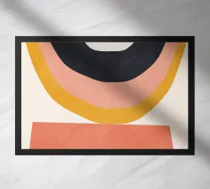 Un'opera d'arte geometrica calma e di grande effetto: il cerchio e il rettangolo si fondono in un'unità armoniosa attraverso dolci sfumature di colore in giallo, rosa e blu. Questo design dona equilibrio visivo e una sottile colorazione a qualsiasi ambiente, ideale per ambienti moderni, interni scandinavi o spazi di lavoro creativi.