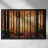 Il dipinto digitale di una foresta autunnale presenta sagome scure di alberi su uno sfondo caldo e dorato. L'opera d'arte testurizzata mostra un fogliame dettagliato nei toni dell'arancione e del marrone, creando una scena di bosco serena e suggestiva.