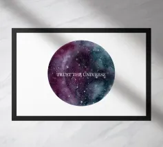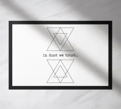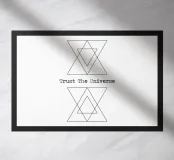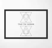 Fiducia nell'universo Citazione tipografica minimalista in bianco e nero con macchina da scrivere