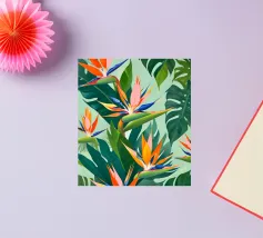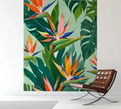 Uccelli in paradiso Hawaii tropicale esotico giungla natura botanica fiori floreale pastello foresta piante