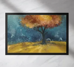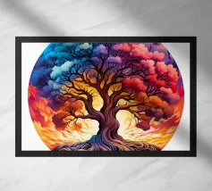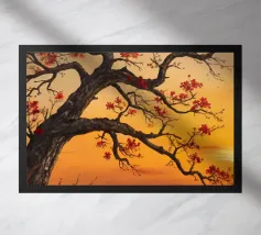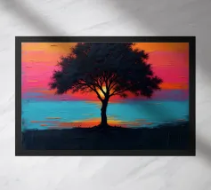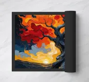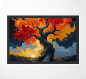Questo affascinante dipinto a olio presenta una drammatica interpretazione astratta di un albero inghiottito da fiamme vibranti. La ricca tecnica di impasto crea un incredibile senso di consistenza e movimento, con spesse pennellate di arancioni, rossi e gialli infuocati che formano la chioma incandescente dell'albero. Il tronco e le radici scure e nodose ancorano l'inferno a un cielo cupo e tempestoso, reso con blu profondi, grigi e accenni di un minaccioso bagliore arancione all'orizzonte. Questo pezzo evoca potenti emozioni di passione, distruzione e resilienza, rendendolo un'aggiunta davvero unica e sorprendente a qualsiasi collezione d'arte.