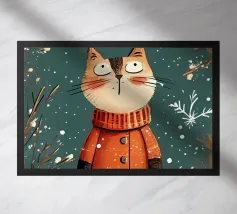 Un adorabile gatto con un maglione a righe, in piedi davanti a un tranquillo lago circondato da montagne. Questo disegno, con il suo stile grafico morbido e i suoi colori naturali, evoca la serenità, la natura e la stagione fredda. Perfetto per la cameretta di un bambino, per un interno accogliente o per gli amanti dei gatti e dei mondi caldi. Un'illustrazione che unisce spirito nordico, umorismo discreto e fascino animale.