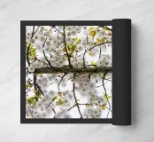 Entrate in un mondo di tranquillità sotto un albero in piena fioritura, dove le delicate fioriture creano una scena pittoresca e sognante: Chioma floreale - I morbidi petali formano un vibrante tetto di colori, dal rosa tenue al bianco candido. Luce filtrata - La luce del sole danza attraverso i fiori, proiettando un bagliore caldo e magico. Profumo di natura - L'aria si riempie della sottile fragranza dei fiori freschi. Rifugio tranquillo - Un luogo sereno per riflettere, rilassarsi e ammirare la bellezza della primavera.