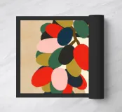 "Grape Array: Diversity in a Glass" presenta una vivace collezione di grappoli d'uva all'interno di un elegante bicchiere da vino, che simboleggia l'armonia nella diversità. Questo pezzo di grande effetto celebra la bellezza della varietà e dell'unità attraverso i colori della natura.