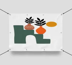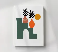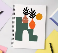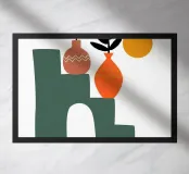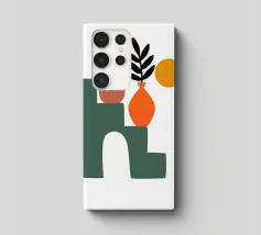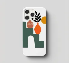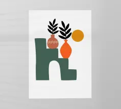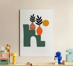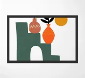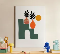 vases plants leaves geometric-shapes stairs sun zigzag-pattern orange-color brown-color green-color minimalist-design shadows curves lines overlapping balance silhouette organic-forms sunlight contrast