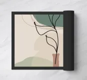 vase leaves stems shapes lines patterns green brown beige abstract curves nature organic minimalist botanical plant outline flow decor contemporary