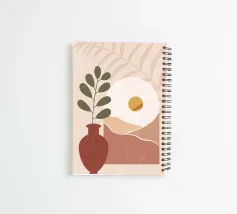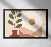 vaso pianta foglie sole alba paesaggio colline fogliame motivo naturale forme audaci geometrico forme semplici colori naturali botanico scenari astratti elementi decorativi forme organiche toni della terra silhouette linee minimali