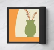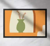 vaso minimo foglie piante interno arco scale verde astratto geometrico arancione piatto semplice moderno arredamento ombra ritaglio casa parete sagoma