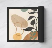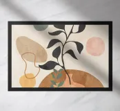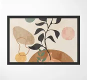 vaso foglie cerchi forme geometriche pianta botanico forme astratte forme sovrapposte forme organiche toni della terra sagome stelo elementi minimalisti colori pastello linee semplici forme naturali pianta in vaso elementi decorativi composizione di natura morta sfondo neutro