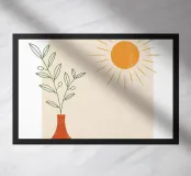 vaso sole foglie sole pianta ceramica botanico arredamento per la casa design d'interni forme semplici fogliame raggi di sole vaso di fiori arte decorativa forme geometriche colore arancione design minimalista foglie verdi elementi naturali arredamento moderno