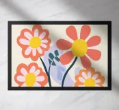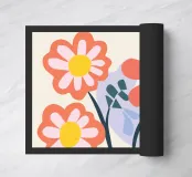 Un vivace e moderno motivo floreale dal sapore retrò: nuclei di fiori giallo brillante, circondati da calde tonalità arancioni e delicati colori pastello, si uniscono per formare un bouquet armonioso in un vaso stilizzato. Completato da sottili sfumature di blu e verde, il risultato è un look unico e senza tempo che illumina qualsiasi ambiente. Perfetto per opere d'arte da parete, tazze, cuscini e accessori per la casa, ideale per gli amanti dell'arredamento di metà secolo, dell'estetica boho e dei design floreali. Un'ispirazione per il soggiorno, la camera da letto o l'ufficio e un regalo affascinante per gli amanti dell'arte e dei fiori.