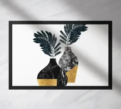 Questa splendida opera d'arte digitale cattura la serena bellezza della natura con una composizione che presenta due eleganti vasi ornati da rigogliose foglie botaniche. Il design minimalista ma vibrante evoca una sensazione di calma e di connessione con la natura, rendendolo perfetto per aggiungere un tocco di calore ed eleganza a qualsiasi spazio. Utilizzata come decorazione murale, come stampa per la casa o come parte di una collezione digitale, quest'opera d'arte invita gli spettatori ad abbracciare la bellezza della semplicità e il fascino senza tempo delle forme naturali.