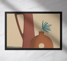 Un vaso minimalista con rami, posizionato su uno sfondo ad arco, che mette in mostra un arredamento semplice ma elegante.