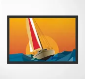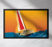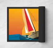 Crogiolatevi nell'energia edificante di un'opera d'arte figurativa che mostra una barca a vela che naviga in un mare in tempesta, il tutto sotto l'abbraccio di un vibrante tramonto con un grande sole giallo. Quest'opera armonizza la feroce bellezza della natura con l'ottimismo e la speranza di un nuovo inizio, diffondendo vibrazioni positive in ogni tratto.