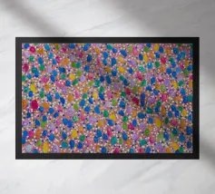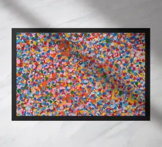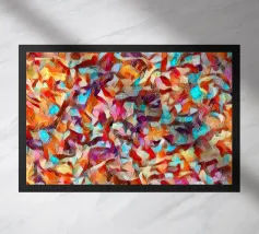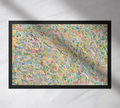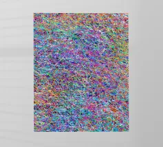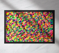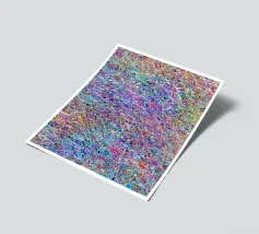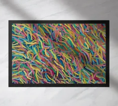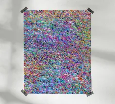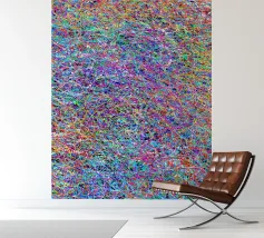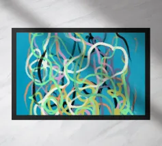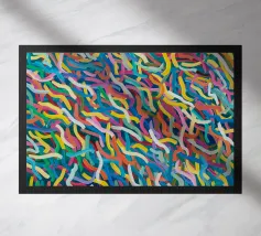 Questo dipinto di design grafico astratto combina scarabocchi surreali con linee di flusso dinamiche e colori audaci in rosso, giallo, blu, bianco, rosa e verde. Ispirata all'espressionismo e alle tecniche di action painting, l'opera trasmette movimento e profondità. Le texture complesse e i motivi ramificati ne fanno un'affascinante opera d'arte moderna.