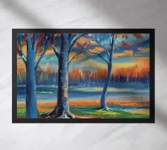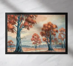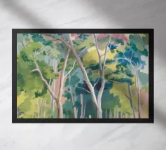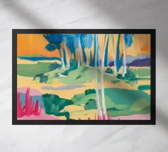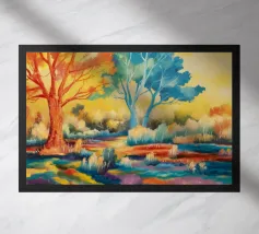 Illustrazione degli alberi del Parco Borghese di Roma. È una combinazione giocosa di colori caldi e luce.
