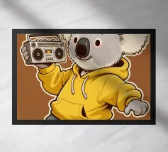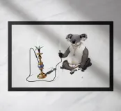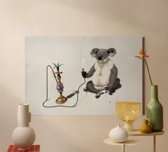 Comica illustrazione di un koala che si gode gli effetti della sua solita pianta di eucalipto. In modo meno tradizionale.