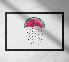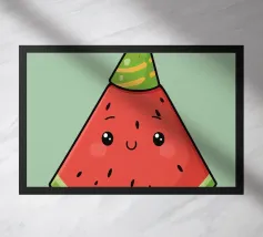 Il personaggio di un'anguria fresca indossa occhiali da sole e un cappello mentre pronuncia un gioco di parole con il testo "Sei un melone!" in bolle vocali.