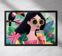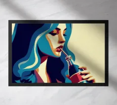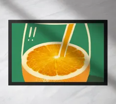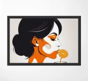 Audace e moderna, quest'opera d'arte raffigura una donna che sorseggia una spremuta d'arancia: l'agrume vibrante incontra la forma minimalista. Un'opera luminosa per cucine, spazi per la colazione o qualsiasi parete che desideri energia.
