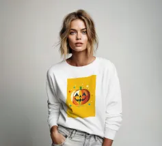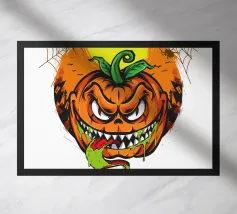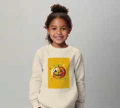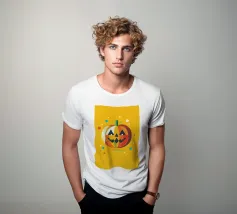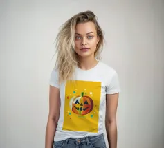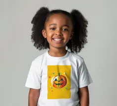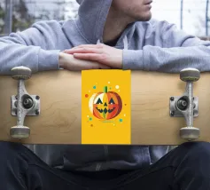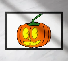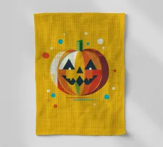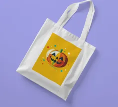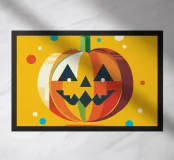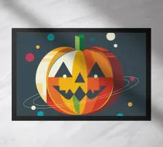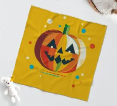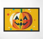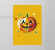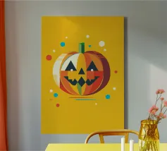 Un'allegra zucca di Halloween dai colori vivaci e dalle forme geometriche: moderna, giocosa e ideale per i temi autunnali di Halloween. Zucca di Halloween colorata con volto Linee pulite e design geometrico Colori vivaci per un look moderno Illustrazione giocosa di Halloween