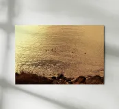 FAA266 LANDSCHAP OCEAAN. GOUDEN LICHT MET ZEEMEEUWEN. acryl