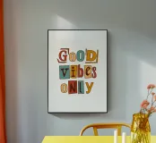 Geef je huis een positief, vintage gevoel met deze "GOOD VIBES ONLY" poster. De motiverende zin wordt gepresenteerd in een leuke, uitgesneden typografische stijl met elke letter creatief geplaatst binnen en buiten kleurrijke blokken. Het retro 70s kleurenpalet bevat rijke aardetinten zoals verbrand oranje, mosterdgeel en gedempt groenblauw, wat het een nostalgische, groovy esthetiek geeft. Deze digitale poster van hoge kwaliteit wordt geleverd op een verbluffende resolutie van 7000 x 5000 pixels bij 300 dpi, wat zorgt voor een scherpe, gedetailleerde afdruk die perfect is voor een gezellige woonruimte of kantoor.